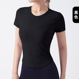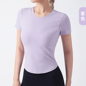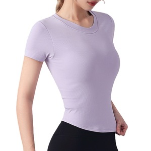 夏の新作スポーツトップス レディース タイトフィット ラウンドネック フィットネスウェア Tシャツ 半袖 固定カップ胸パッド付き ランニング ヨガウェア