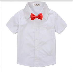白い半袖-赤い蝶ネクタイ