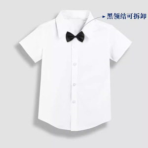白い半袖-黒い蝶ネクタイ