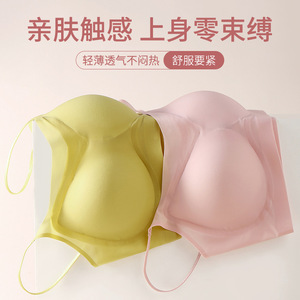 無痕下着女性夏大胸が小さくて、スチールリングなしブラジャー運動美背ブラジャー女性超薄調整型