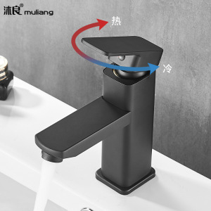 沐良ステンレス黒トイレ洗面器蛇口冷熱混水浴室四方単孔洗面器蛇口