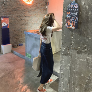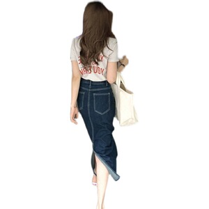 大量の現物のレトロなデニムのスカートは春の高腰で痩せています。