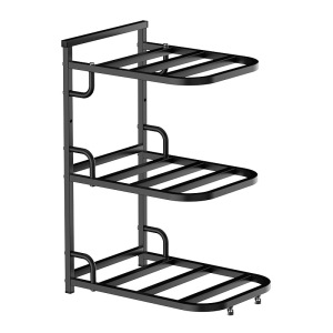 台所のかまどの鍋の収納棚家庭用多目的台の角の棚は多層の下の水槽の棚を調節できます。