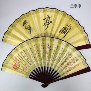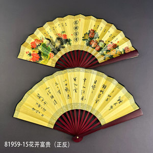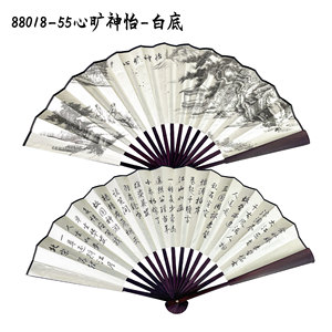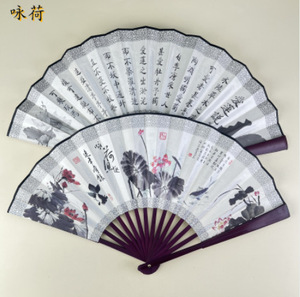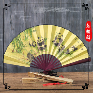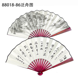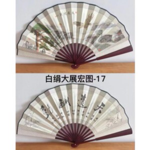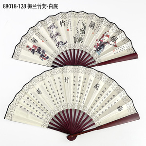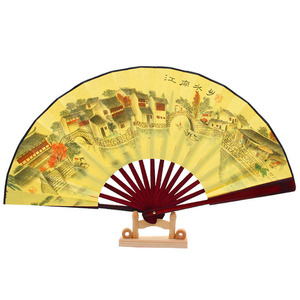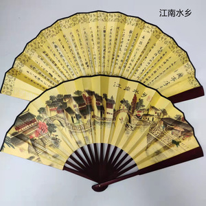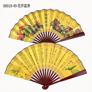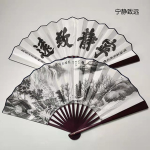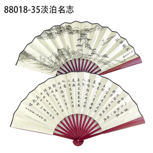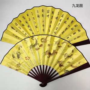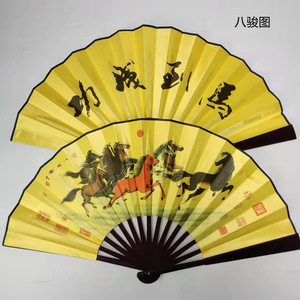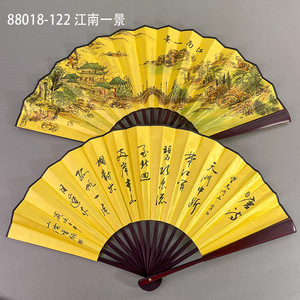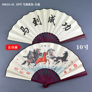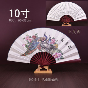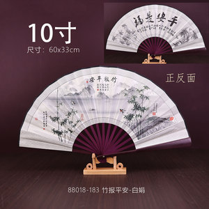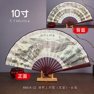古風10寸男扇中国風両面図案印刷折扇演出道具絹布扇子卸売り