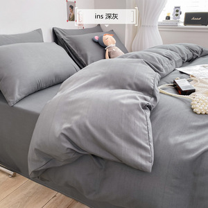 洗濯綿の純色四点セットの寝具は、日本のシンプルな毛磨きシーツです。