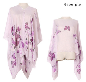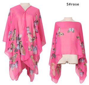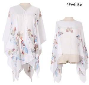 夏の日よけ模造シルクストール蝶プリントアマゾン日焼け止めストールギフトシルクストールshawl