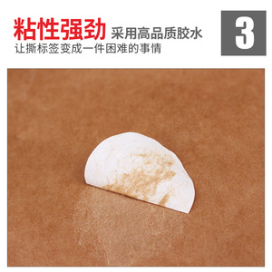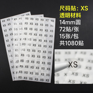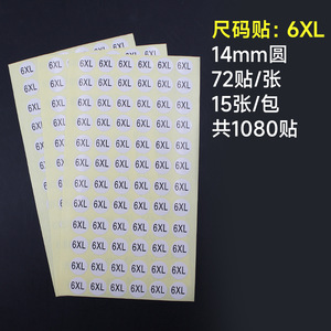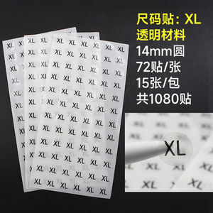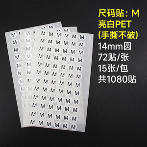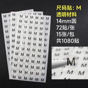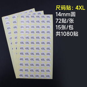 サイズは円形のステッカーラベルを貼っています。服のサイズは白地の黒い字のsmlxl 14mmの商標シールを貼っています。