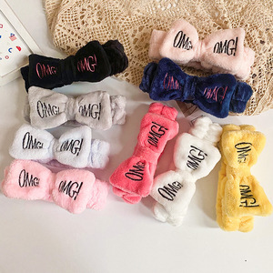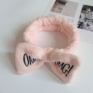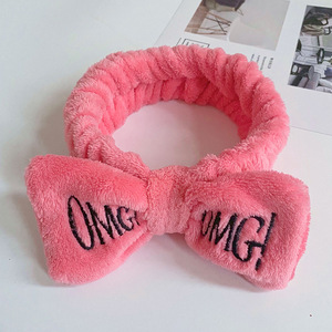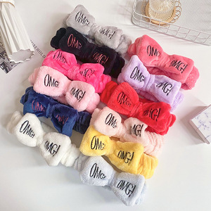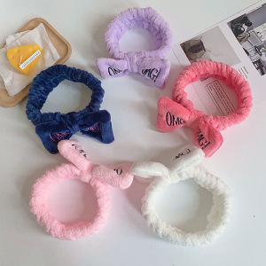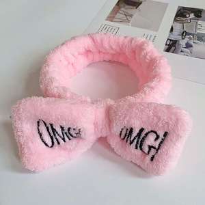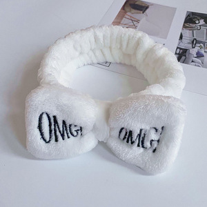 OMG蝶結びのヘアバンドの女性の洗面器のヘアバンドの顔を洗っています。