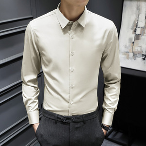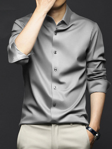 【高級品】メンズ長袖シャツ、ノーアイロン、防シワ、ビジネスカジュアルシャツ、オフィスフォーマル、高級感、軽贅沢シャツ