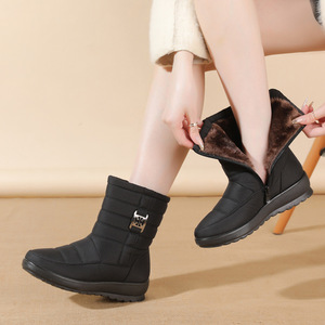 女性用クロスボーダー新作スノーシューズ、冬用ベルベットウォームブーツ、中高年ママ向け滑り止めミッドカーフレディースコットンシューズ、在庫あり