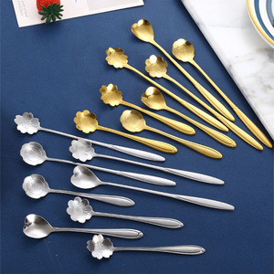 桜のお土産スプーンの長いコーヒースプーンのアイデアの金色の攪拌スプーンのデザートの花のスプーンの贈り物のスプーン