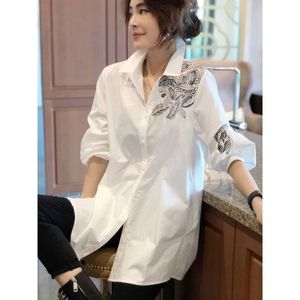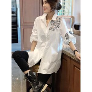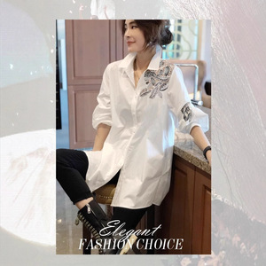 純白スタンドカラーシャツレディース韓国風ゆったり大きいサイズミドル丈シャツ2025春新作ヨーロッパステーション