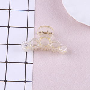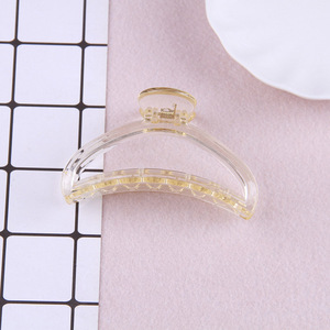 シンプルな女性がdiyの後頭部をつかんで髪を伸ばしてシャンパンの透明な底の胚の髪飾りをつかんで、ヘアピンの卸売りをします。