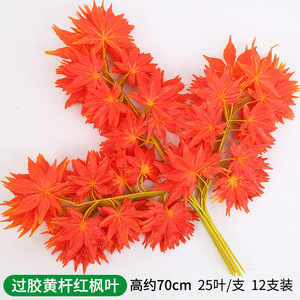 ゴムの黄色の竿の赤いカエデの葉 (12本)