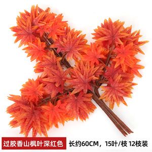 カエデの葉の装飾の枝の偽の木の葉のイチョウの葉のプラスチックの偽の花の赤い秋の室内の工事の造景をシミュレーションします。
