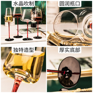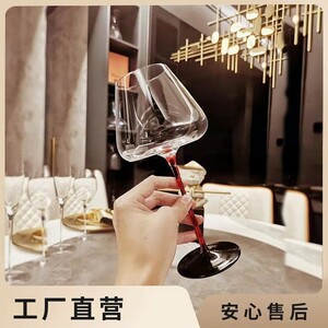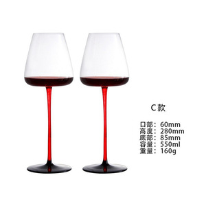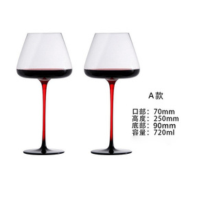 ブルゴーニュクリスタルワイングラス卸売、軽奢な赤い脚黒底ガラスカップギフト、高級グラス家庭用ワインセット