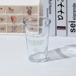韓国風フリップガラスカップフレンチレタープリントカップホームブレックファストコーヒーカップイン撮影