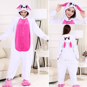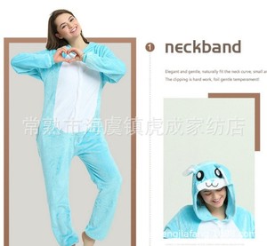 秋冬アニメ白兎藍兎粉兎動物ワンピースパジャマ男女成人児童フランネル家庭服