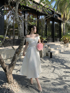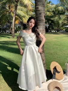 フランスの小さなドレスの女性は普段白いアンドロメダのワンピースを着て蝶ネクタイをして胸を拭いて長いスカートを撮ることができる