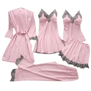 国境を越えたソースはシルクパジャマのバスローブの下着の5点セットのストラップのセクシーな女性の家庭服欧米のパジャマを模倣している