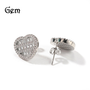 欧米風ハート型イヤリング ins風銅製ジルコン象嵌ライトラグジュアリーレトロトレンドヒップホップイヤリングアクセサリー 卸売対応
