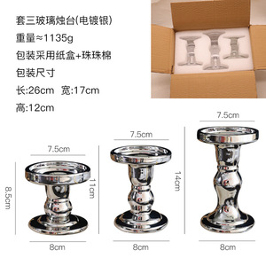 カラーボックスセット3つのガラスの燭台 (透明色)