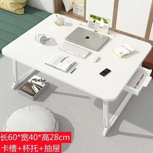 シンプルなベッドの上の机の板の寮は窓をはおりて学習します。