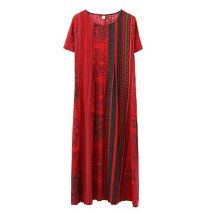 2023夏は氷の糸のゆったりした半袖のプリントのワンピースの中の長いタイプのお母さんの服の復古の文芸の気質の長いスカートをまねます。