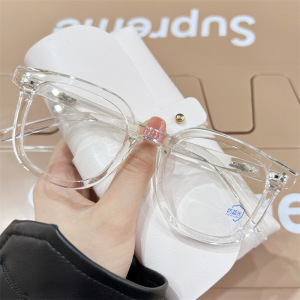 透明の大きいフレームは青い光の近視のメガネの女性のすっぴんの鏡の丸い顔を防ぎます。