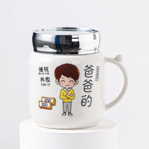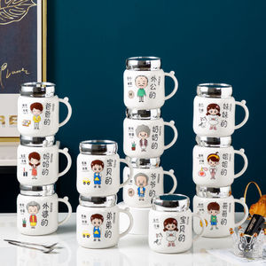 陶磁器の水の家族のかわいい漫画の家庭用の家庭は陶磁器のコップの日常用のデパートの鏡の蓋を区別します。