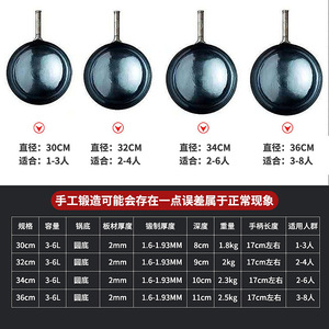 張丘鉄鍋 手作りの昔ながらの炒め鍋 ノンスティック鍋 家庭用 手打ち炒め鍋 無塗装 鉄鍋 工場卸売