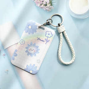 インブルーフラワースライドカードホルダー学生食事カードバス地下鉄IC IDカード保護カバーID収納