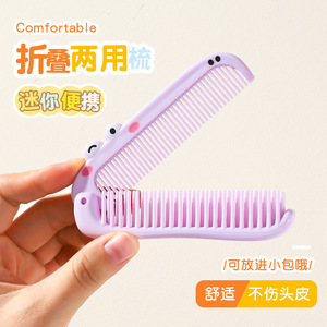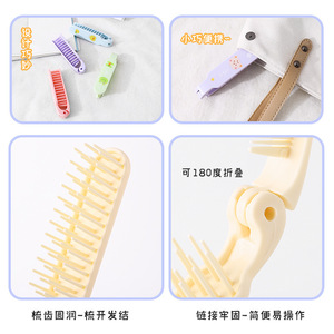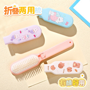 漫画かわいいポータブル折りたたみ美容櫛学生レディース自宅寮両用順髪櫛少女心プラスチック櫛