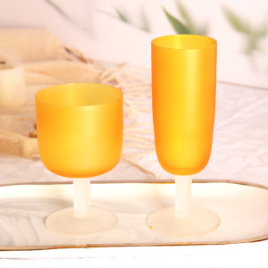 中古落日カップ暮光のオレンジ色のフロストグラス高足カップワイングラスプレゼント
