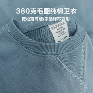 純綿380g重ポンド毛輪三角丸首衛衣オーダーメード印刷ロゴ図男女霧スモッグブルーゆるい肩落ち