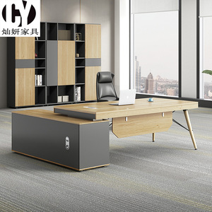 上司の机はシンプルで現代的なオフィスの高級事務机の組み合わせの総裁の事務机と椅子のセットの大きいクラス台です。
