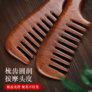 黒檀の幅広歯櫛、白檀の大きな歯の櫛、巻き毛や長い髪用の櫛、家庭用マッサージ、抜け毛防止、頭皮マッサージ用櫛