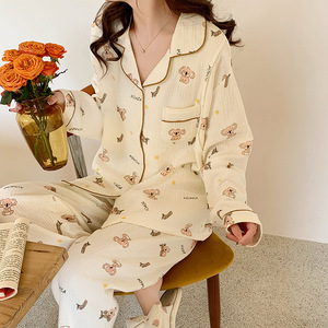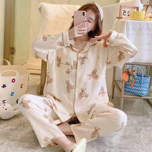 純綿ガーゼ月子服春秋薄手着物授乳パジャマ夏妊婦出産後授乳待機ホームウェア