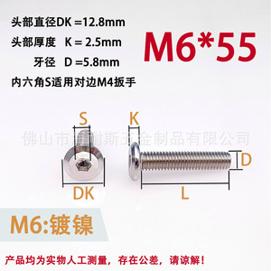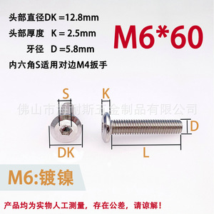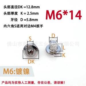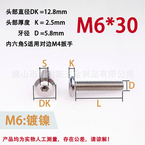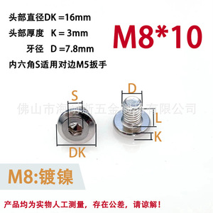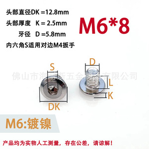 面取り内六角 M6*8mm [ネジの長さは頭部を含みません]