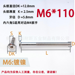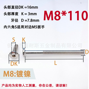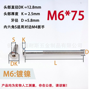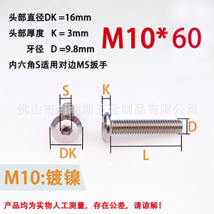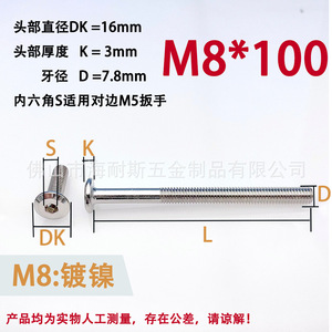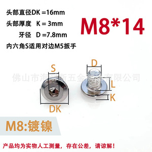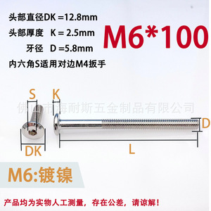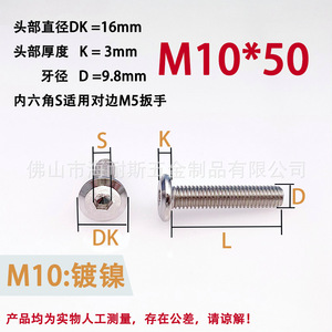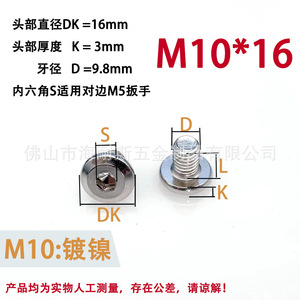 炭素鋼ニッケルメッキ平頭倒辺六角穴付きねじニッケルメッキ平頭斜辺六角穴付きボルトクランプ対ロックねじ