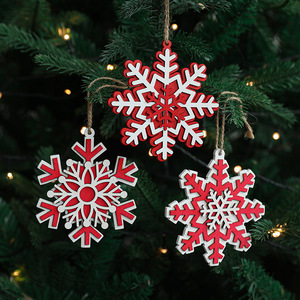 Amazon新品北欧风クリスマスクリエイティブペンダント木制スノーフレーククリスマスツリーペンダントペンダント饰り赤