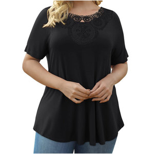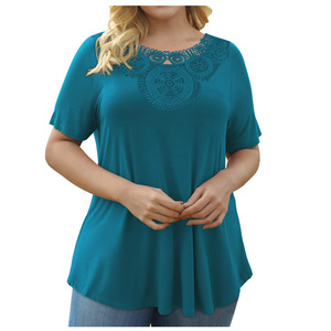 2025年夏 欧米越境新商品 レディース 大きいサイズ 半袖 プルオーバー レース プリーツTシャツ ウエストマークトップス