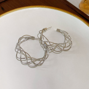 銀針ins風丸耳輪韓国シンプルな金属デザイン感イヤリングネット赤個性気質百合耳飾り