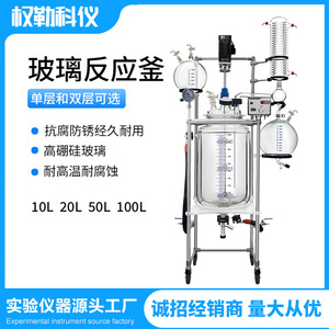 Qlab 100l実験室蒸留抽出二重ガラス反応釜単クリップセットガラス反応器ミキサー