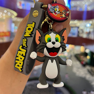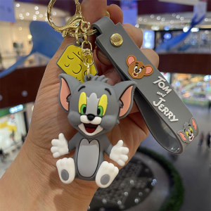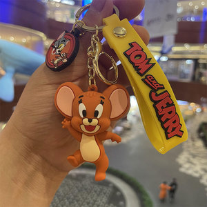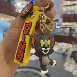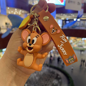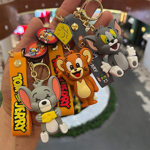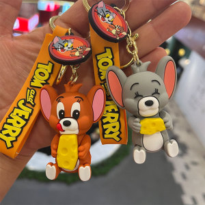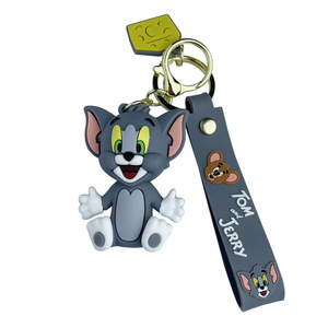 漫画かわいいトムジェリー人形キーホルダーpvcシリコン携帯電話ストラップ自動車キーチェーンペンダント卸売り