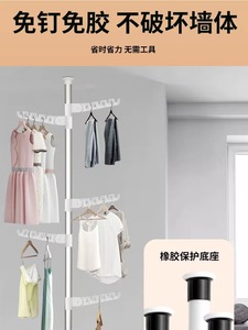 家庭用床置き式コートラック天立ハンガーバルコニーステンレス穴なし伸縮ロッド