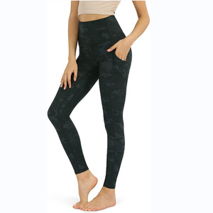 Wish春の女性の多色ポケットプリント運動フィットネスヨガレギンスcm890