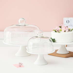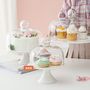 シンプルな背の高いケーキ皿の間食は果物皿のデザートを試食します。