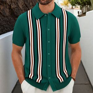 アマゾン外国貿易男性服夏グリーンストライプ半袖修身ビジネスpoloシャツニット潮sy0113