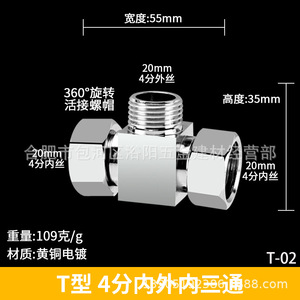 全銅製三方分流器、4点活栓、4方向Y型分流器、1入口2出口水道管三方継手